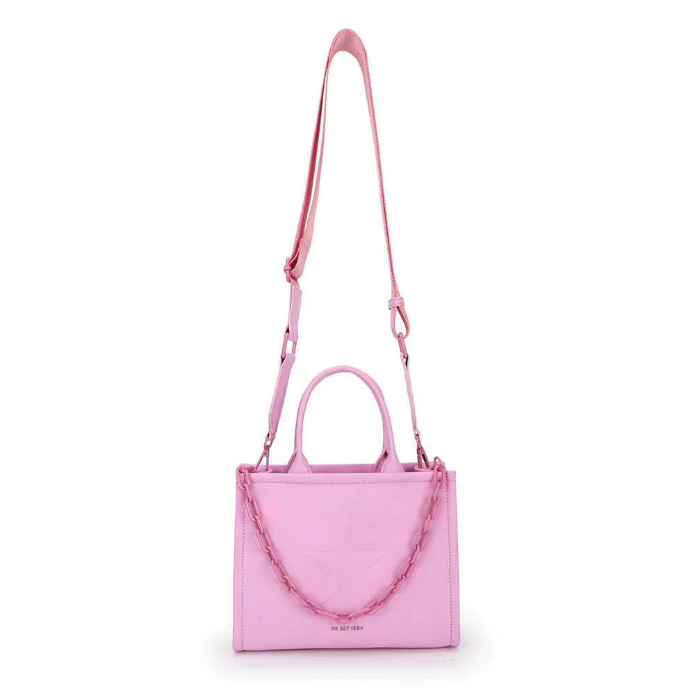 Our Alyce Handbag features, a gorgeous leather, a imprinted star on the front, two inside compartments, two handles. The quality of this person is amazing and stock is super limited, so grab yours today.
