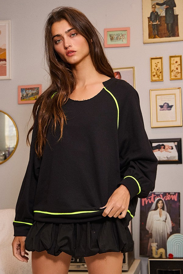 BLACK & NEON LIME GREEN SWEATSHIRT WITH DETAIL