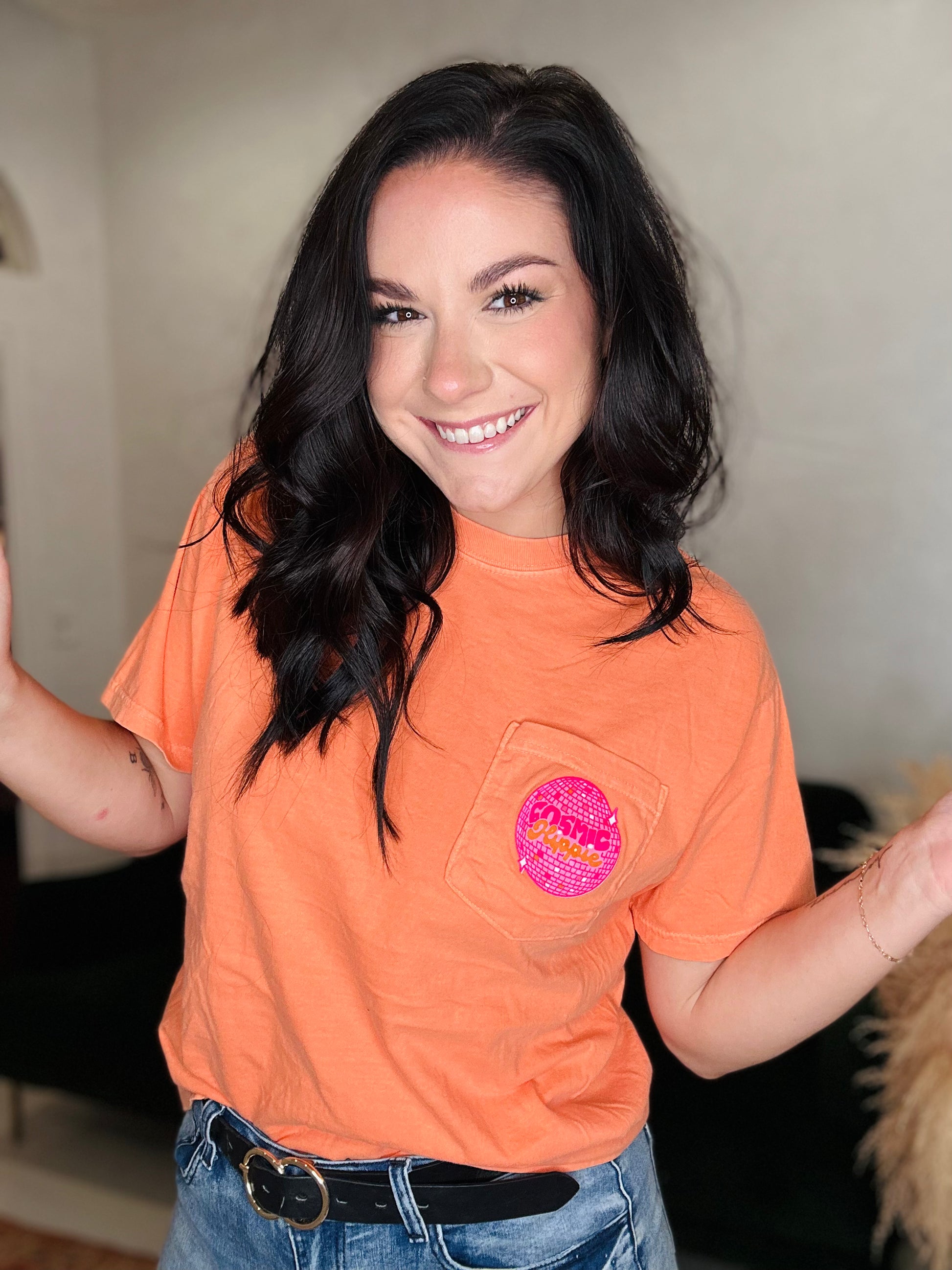You can't go wrong with a Cosmic Hippie tee, we wouldn't be here if it wasn't for all you guys. We are so grateful for all of you. Both colors are bright and beautiful, made by comfort colors so you know they are good!