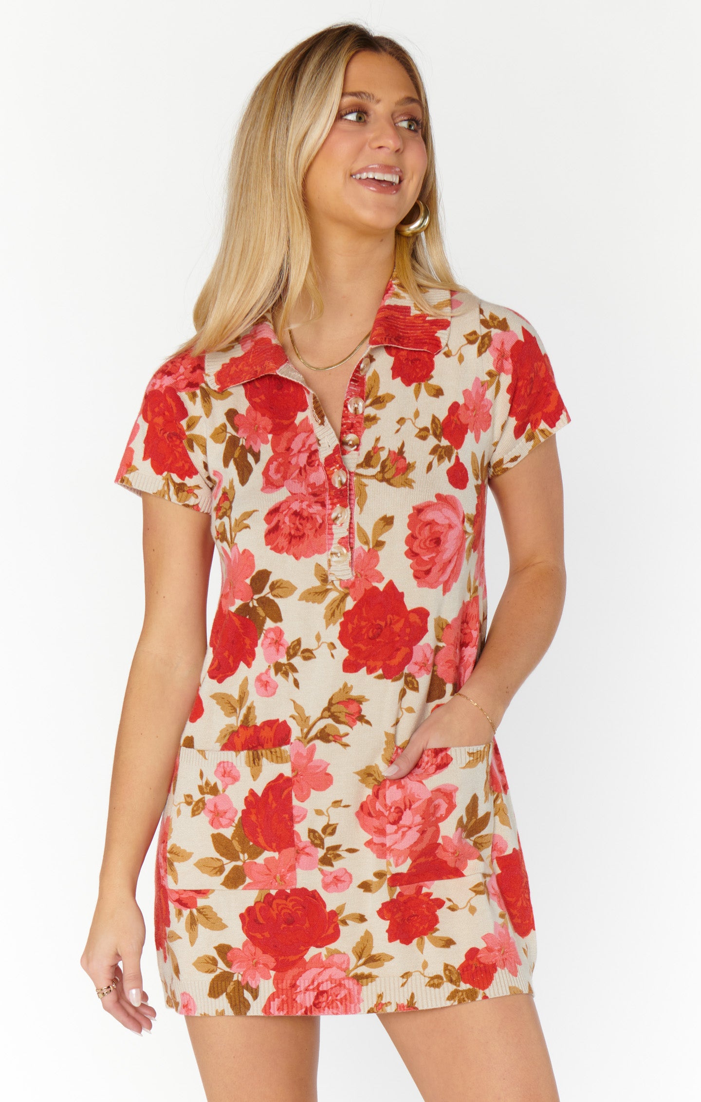DEXTER BUTTON SWEATER DRESS TAN HILLSIDE FLORAL