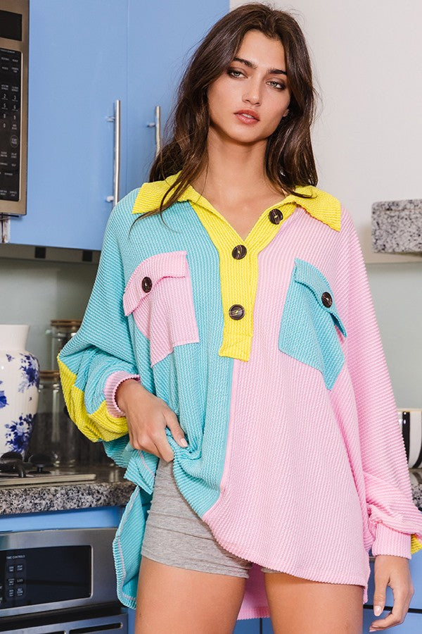 COLORBLOCK OVERSIZED BUTTON UP TUNIC