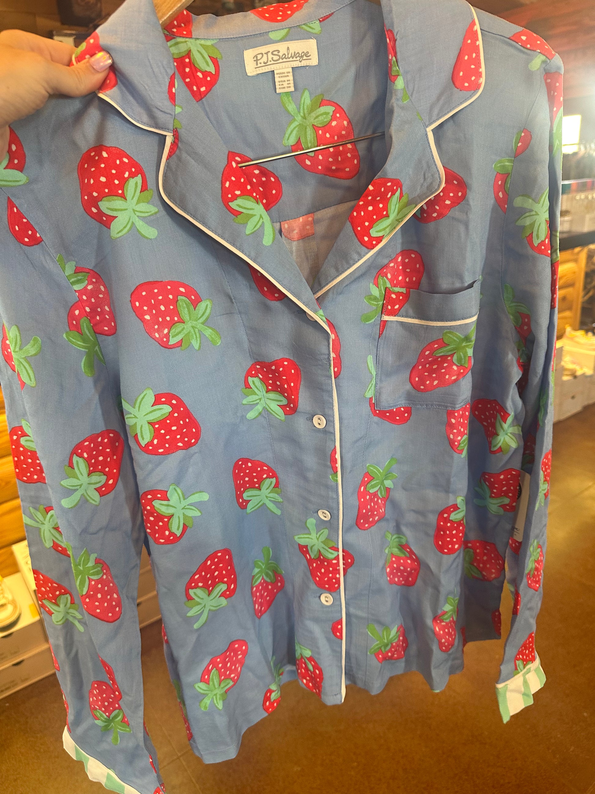 Strawberry long sleeve button up pjs