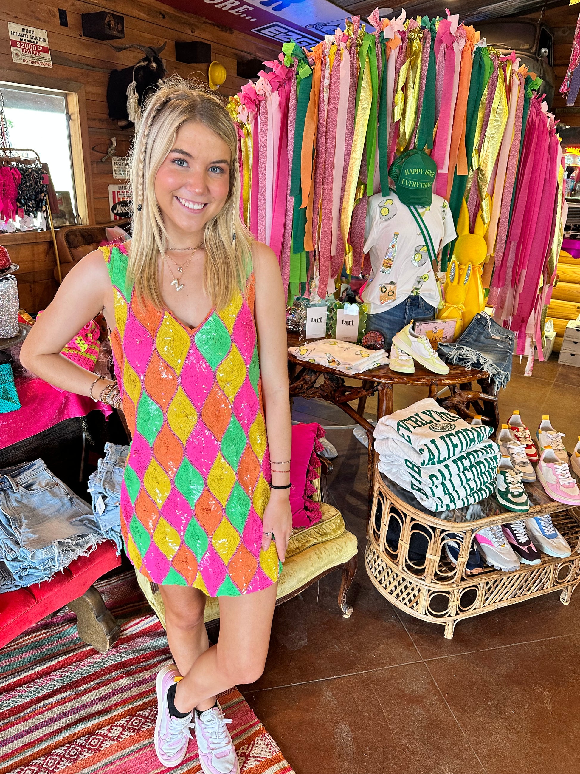 LOW DOWN MINI DRESS CHECK ME OUT SEQUINS