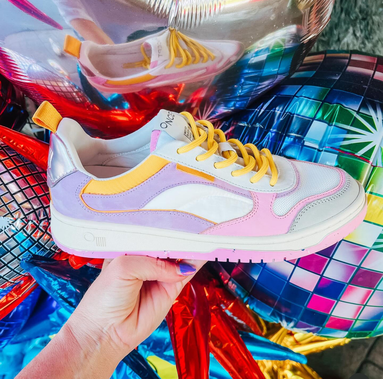 Step into the future this Spring with the Orbital Sneaker, PORTO. Bring innovation to classic silhouettes and set new boundaries to what is"basic". The Porto fuses sustainability into everyday style with its thoughtfully chosen materials of plush Re-Nylon, Galactic recycled mesh, signature Re-Speckled rubber outsole and LWG rated leather to offer the highest quality and conscious fashion practices.