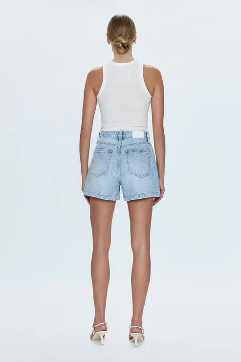 Crafted from rigid, non-stretch denim, this short provides structure and holds its shape beautifully, ensuring it looks as good at the end of the day as it did in the beginning. The Berkeley wash, a bright light blue with gentle fading and subtle whiskering, gives it a perfectly lived-in feel, while the clean finish hem keeps it looking polished. Add a touch of timeless cool to your closet.