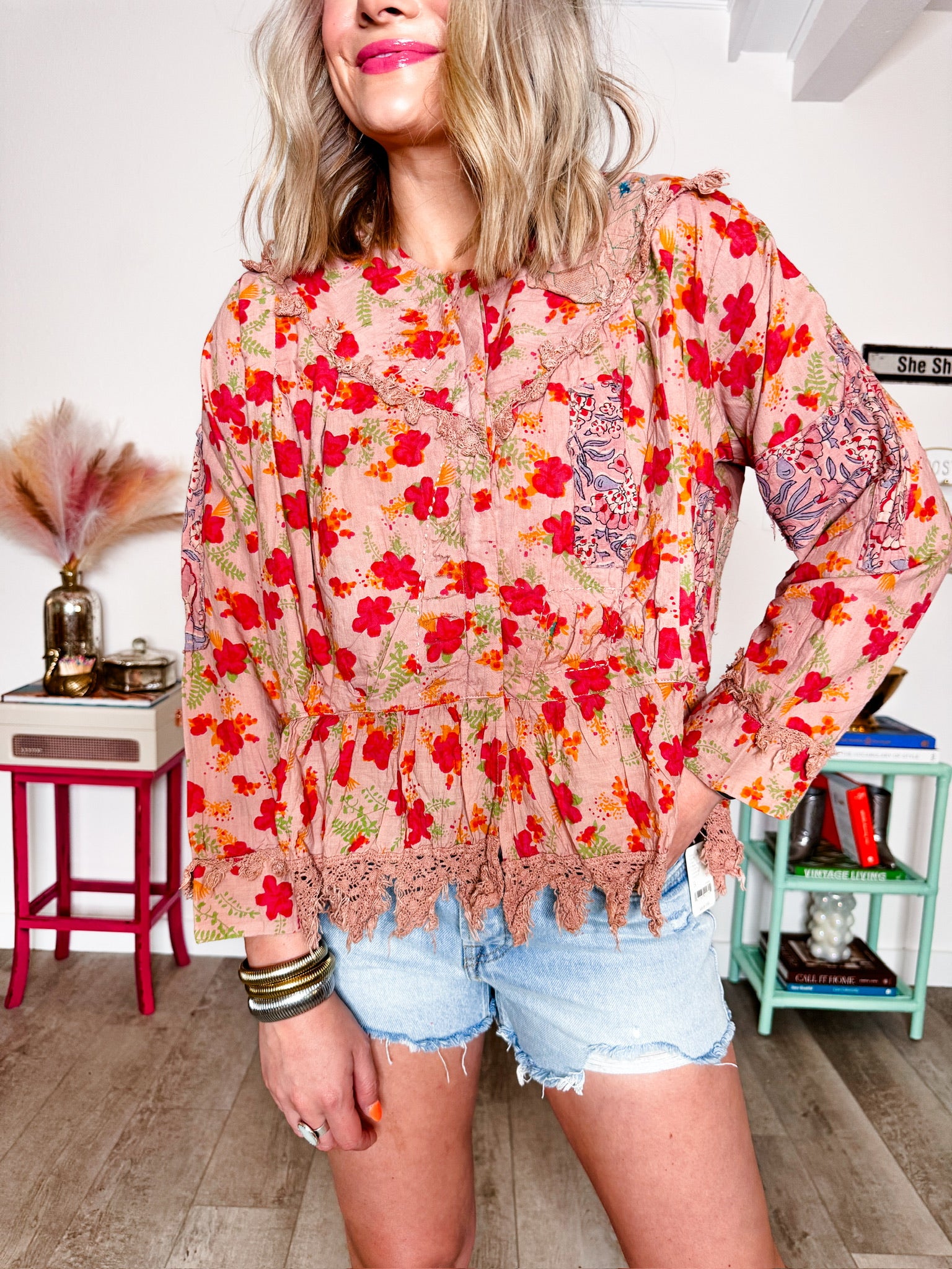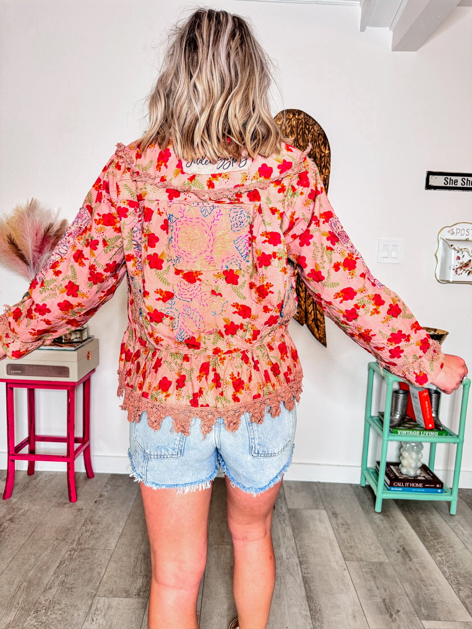 Applique Patch Floral & Stitching Detailing