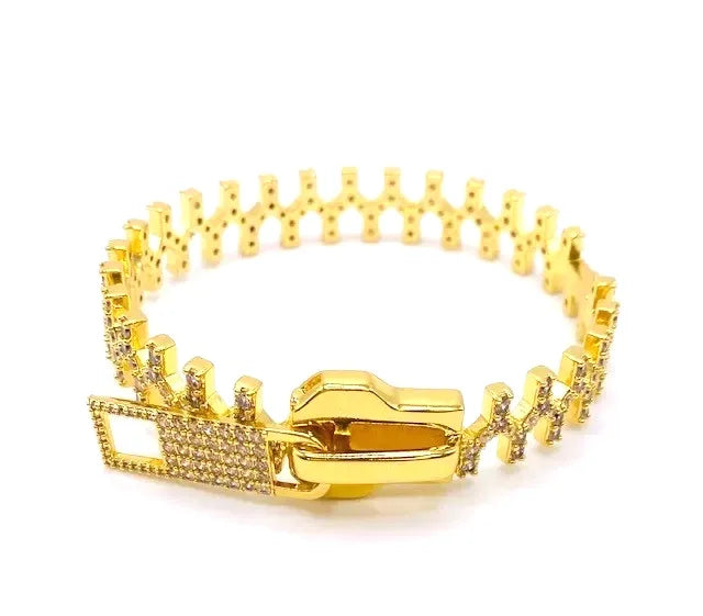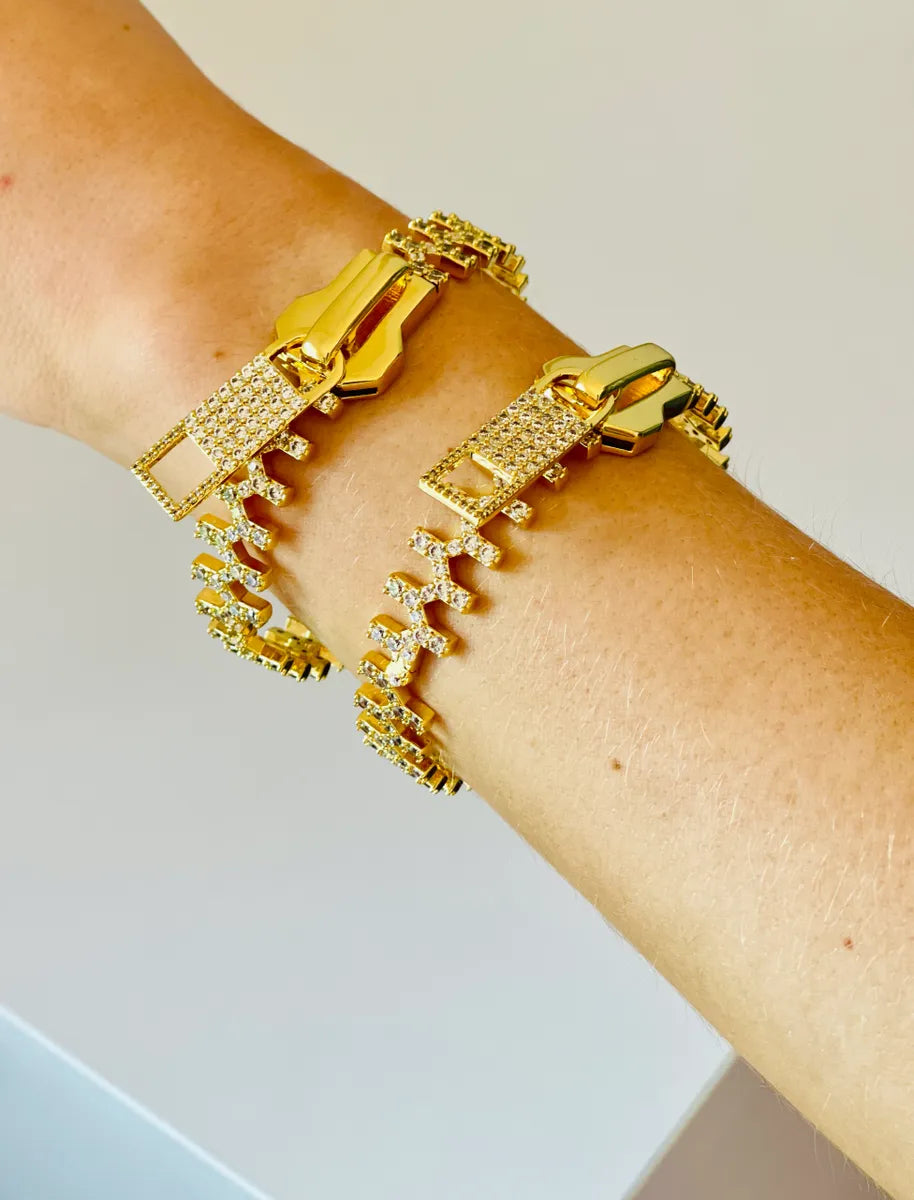 The Zipper Bracelet is Allison's favorite piece! Featured in Vanity Fair and Vogue, this is a beautiful bracelet made from 18K gold plated sterling silver with sparkling CZ stones. Crafted with a secure side button closure, this chic bracelet is a fabulous piece that will add glamour to any look.